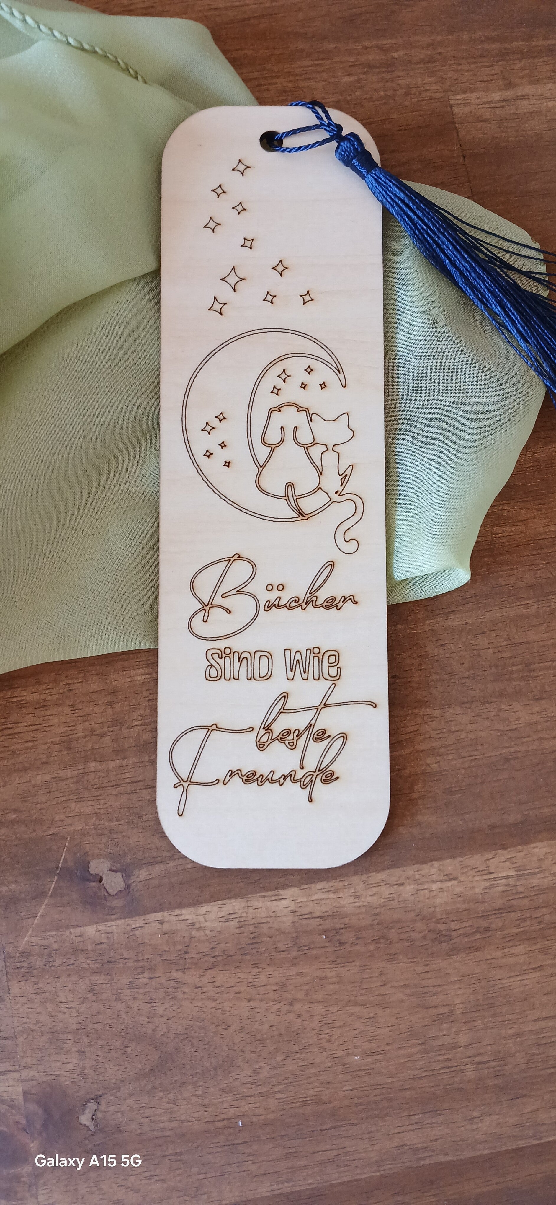 Lesezeichen aus Holz "Bücher sind die besten Freunde"