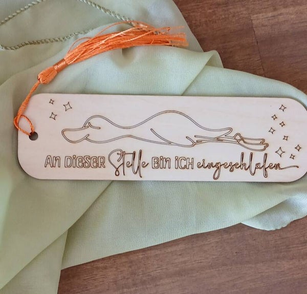 Lesezeichen aus Holz "An dieser Stelle bin ich eingeschlafen"