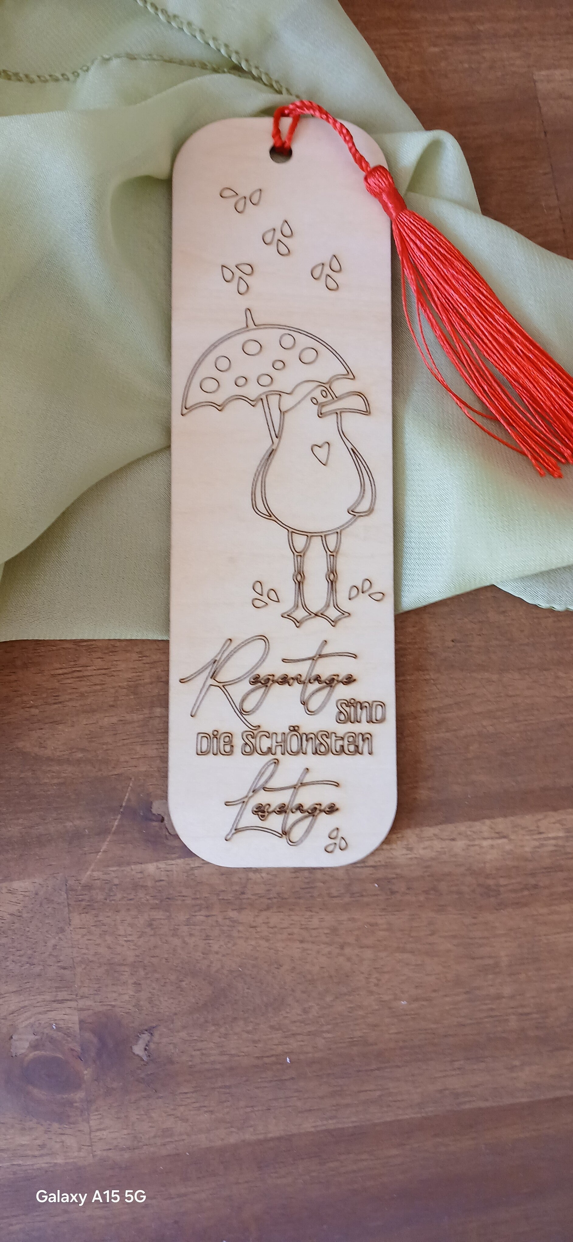 Lesezeichen aus Holz "Regentage sind die schönsten Lesetage - Möwe"