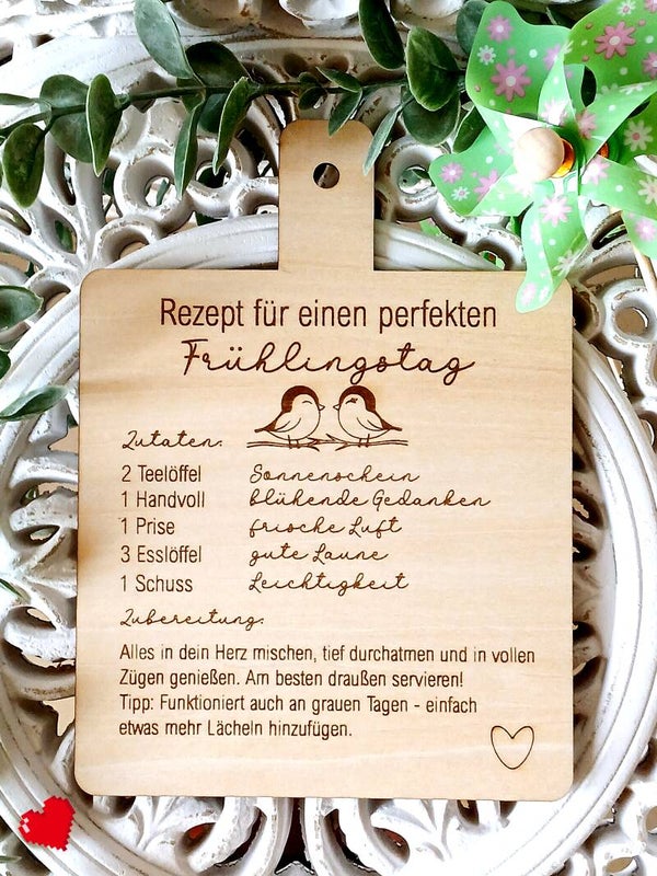 Holzbrett "Rezept für einen perfekten Frühlingstag"