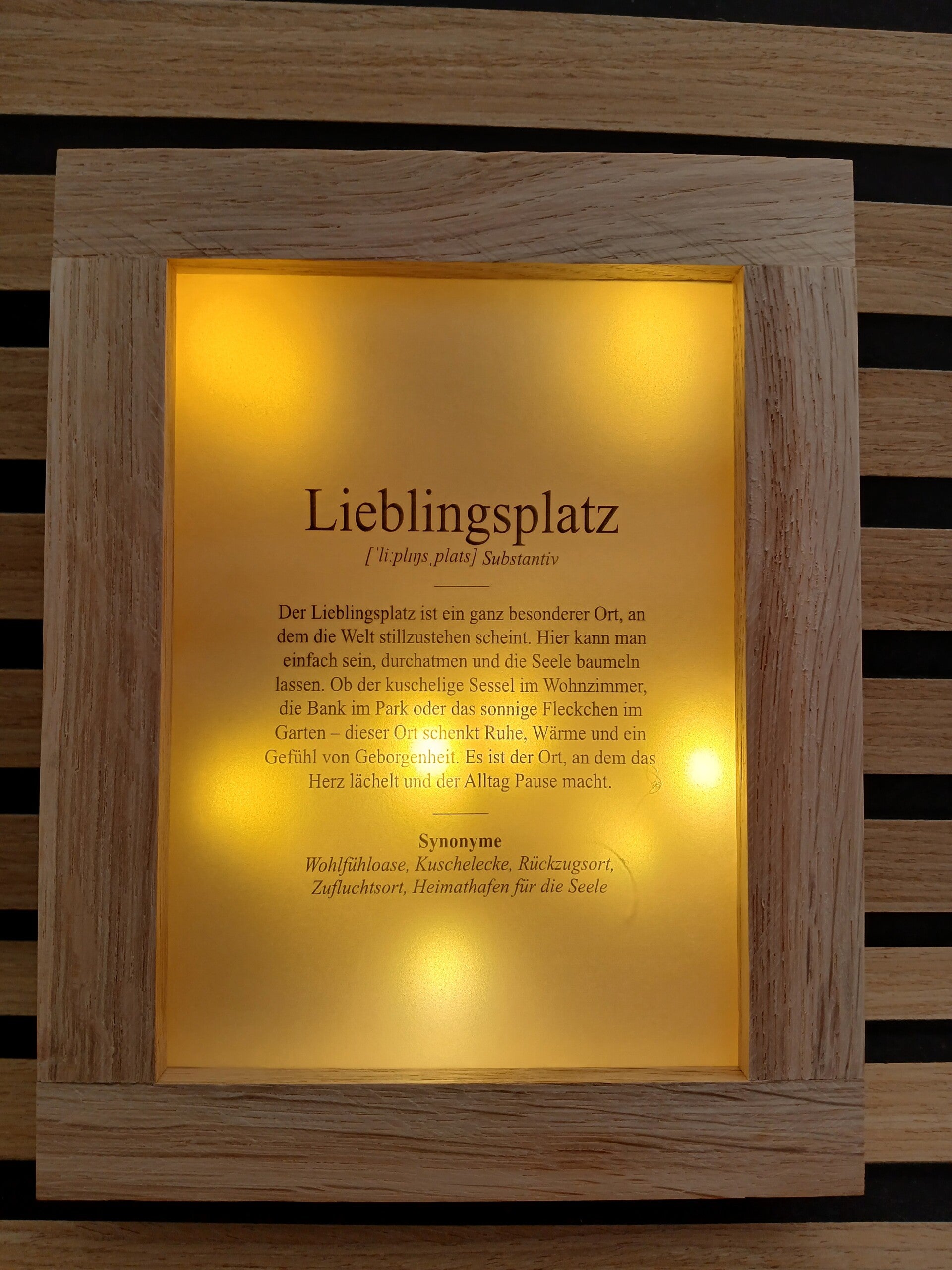 Beleuchteter Holzrahmen "Lieblingsplatz"