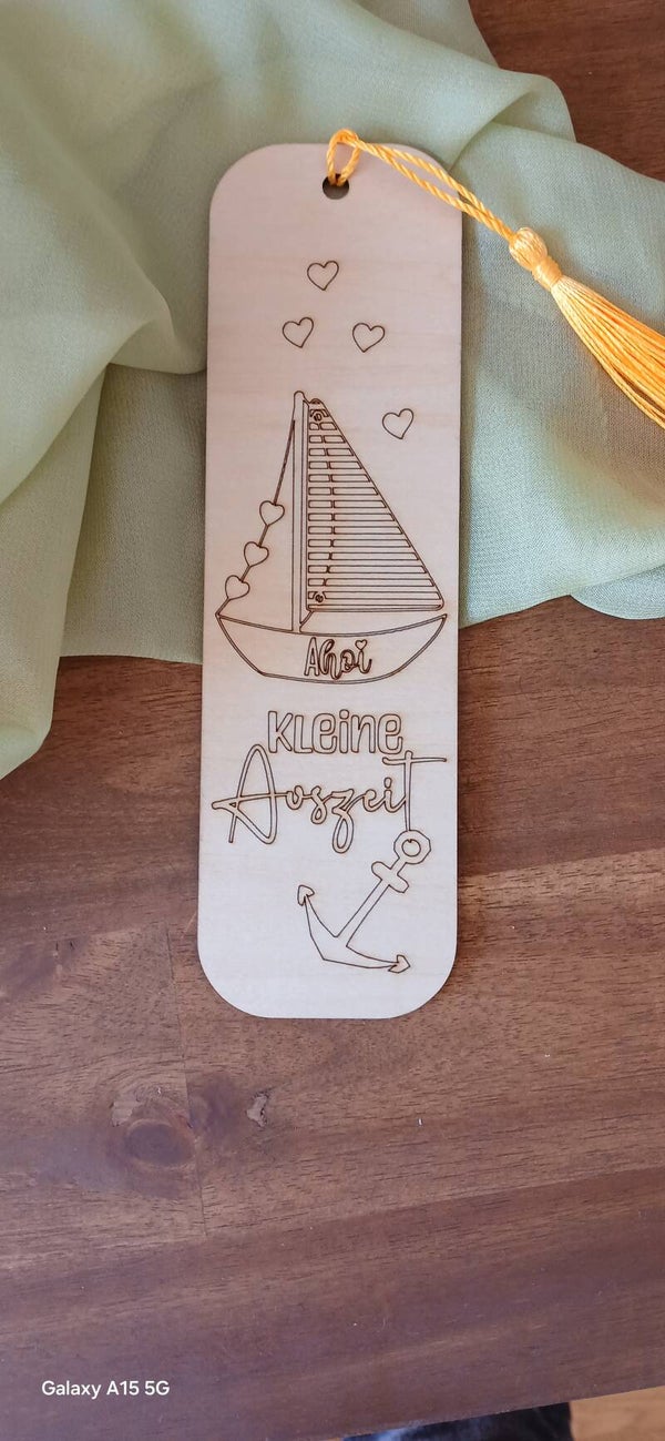 Lesezeichen aus Holz "Lesen ist wie ein kleiner Urlaub