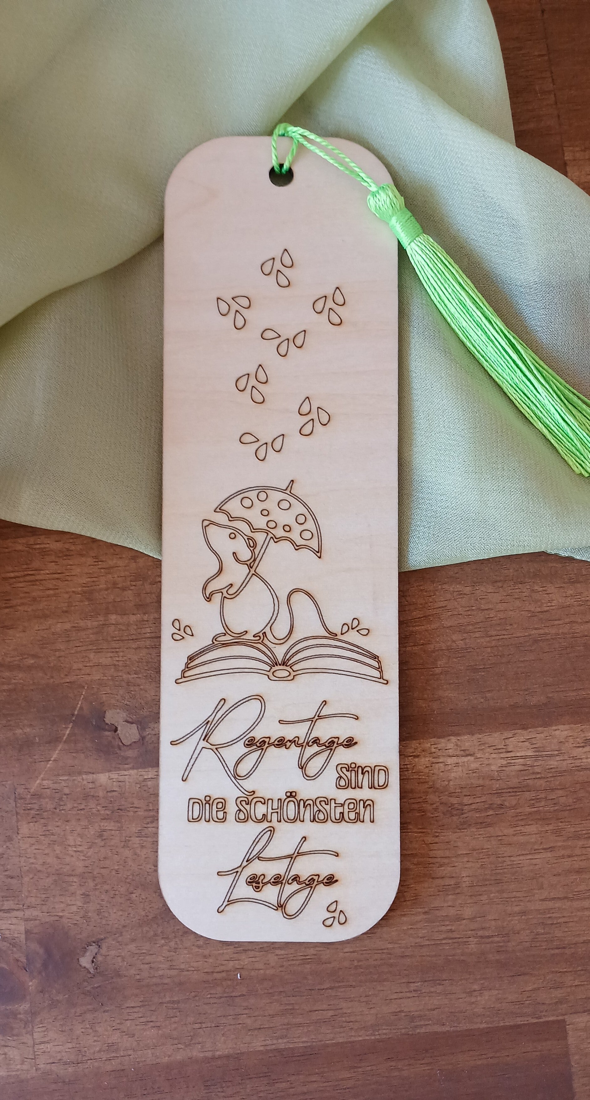 Lesezeichen aus Holz "Regentage sind die schönsten Lesetage - Maus"