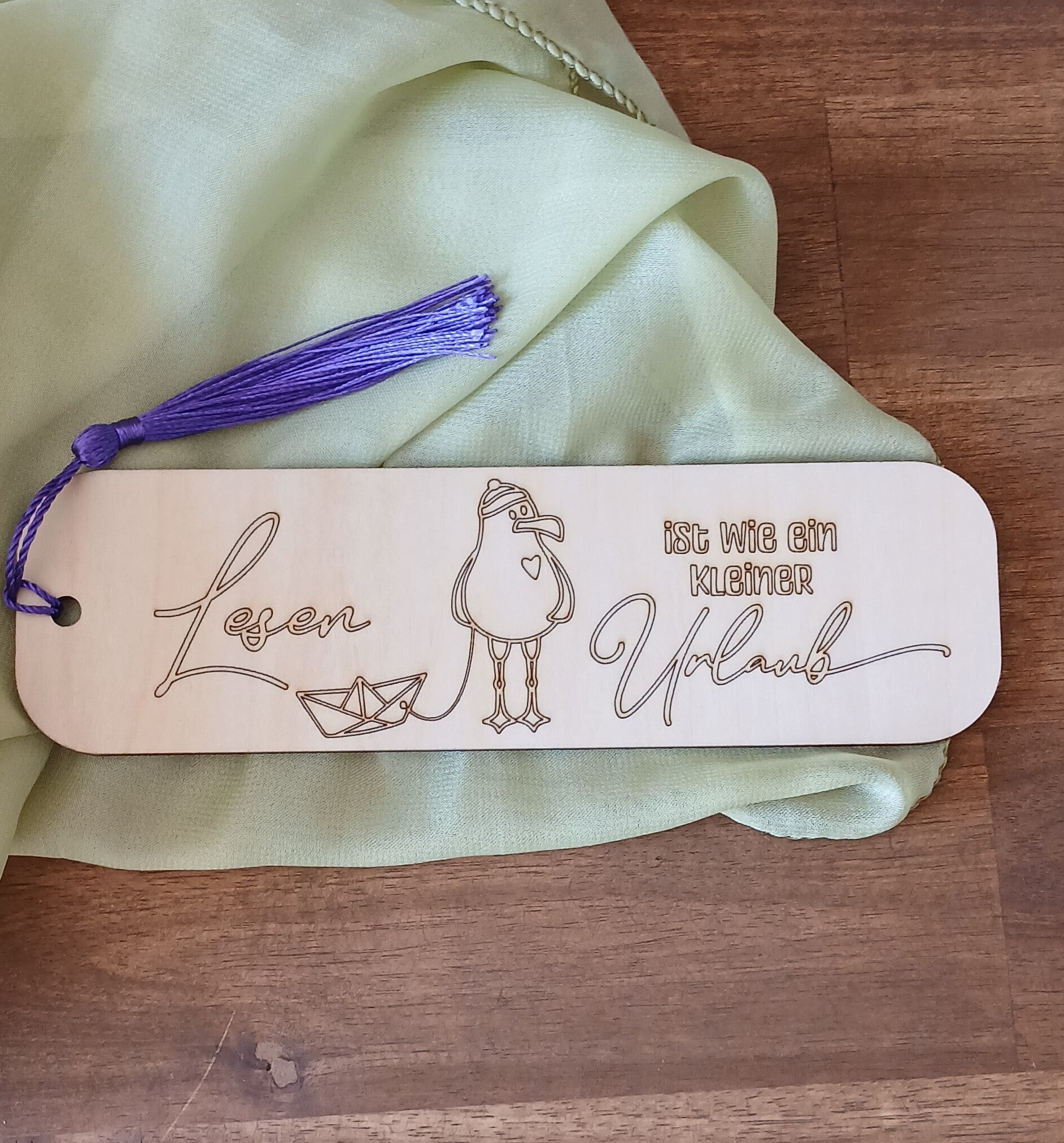Lesezeichen aus Holz "Lesen ist wie ein kleiner Urlaub - 4,50 €