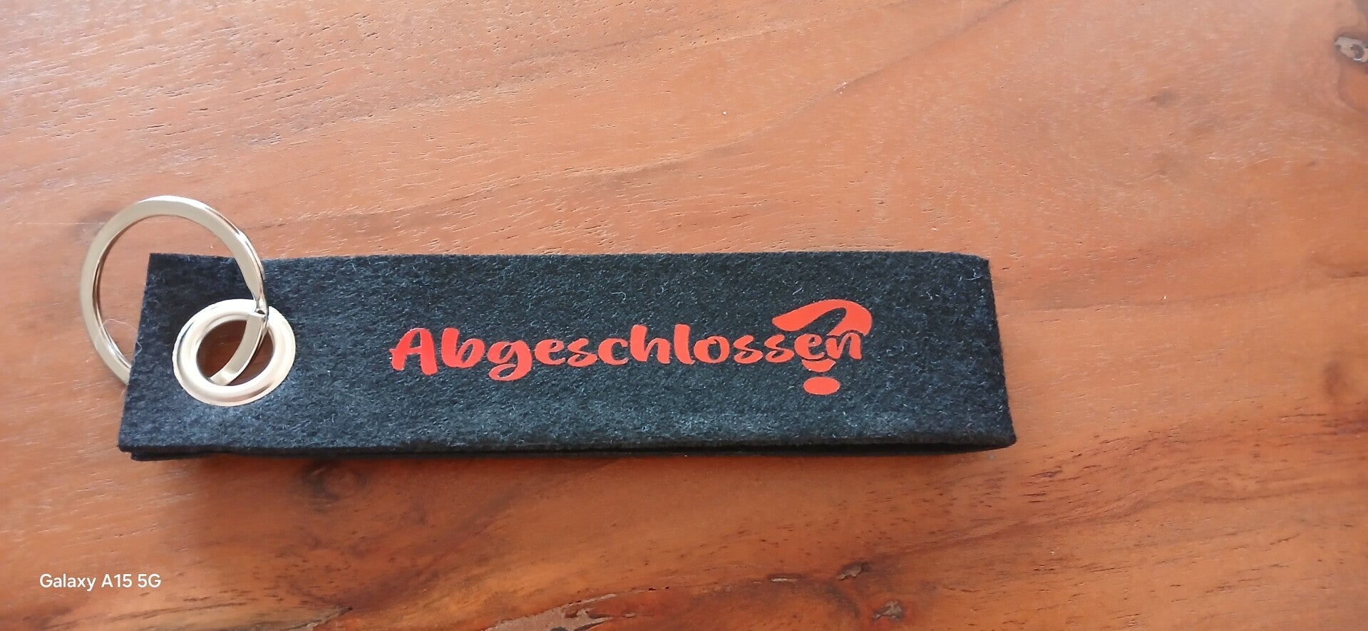 Schlüsselanhänger aus Filz schwarz/rot "abgeschlossen?" - 5,50 €