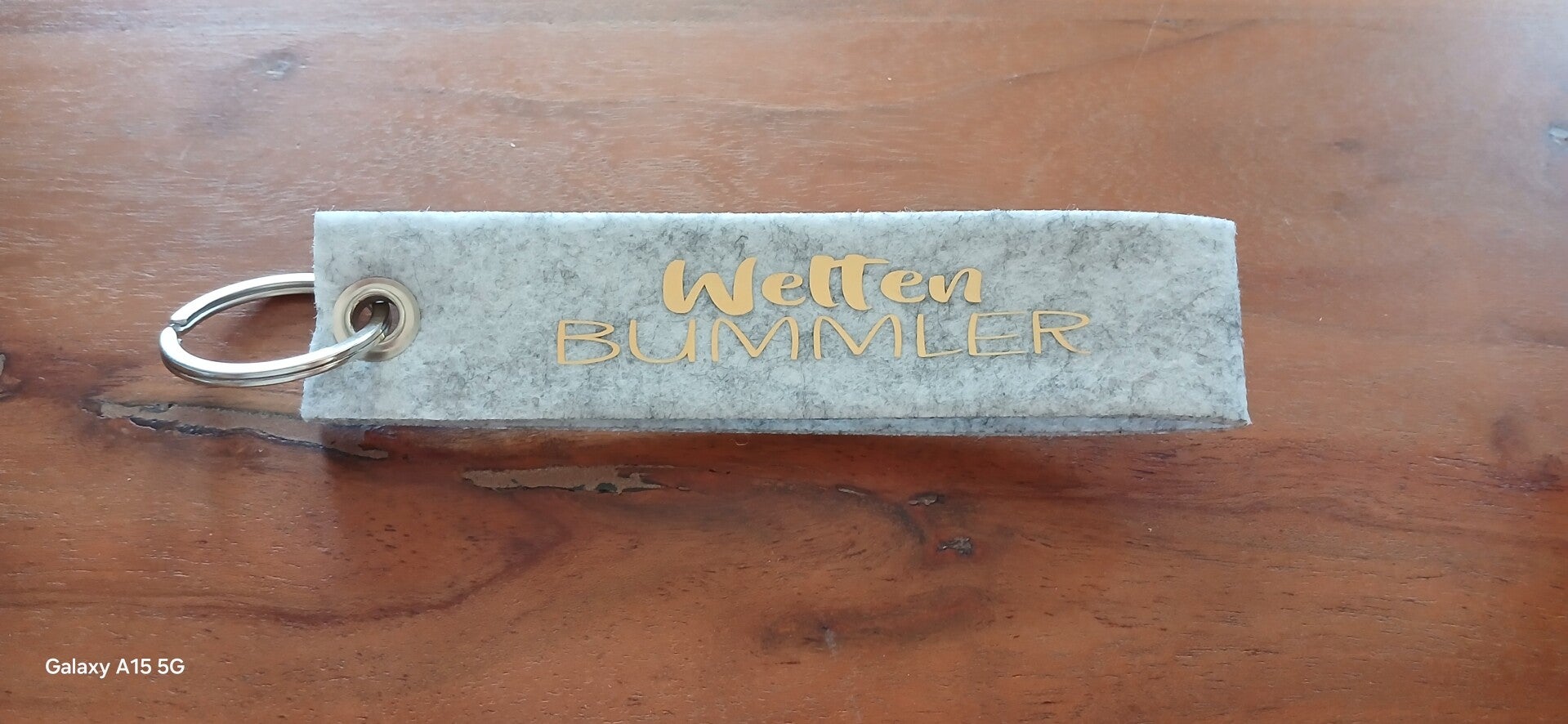 Schlüsselanhänger aus Filz hellgrau "Weltenbummler" - 5,50 €
