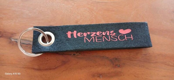 Schlüsselanhänger aus Filz schwarz/rot "Herzensmensch"