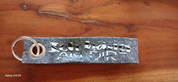 Schlüsselanhänger aus Filz dunkelgrau "Ich häng an dir"