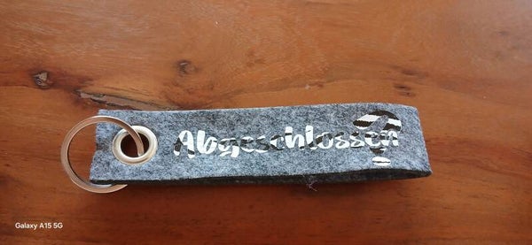 Schlüsselanhänger aus Filz dunkelgrau "abgeschlossen"