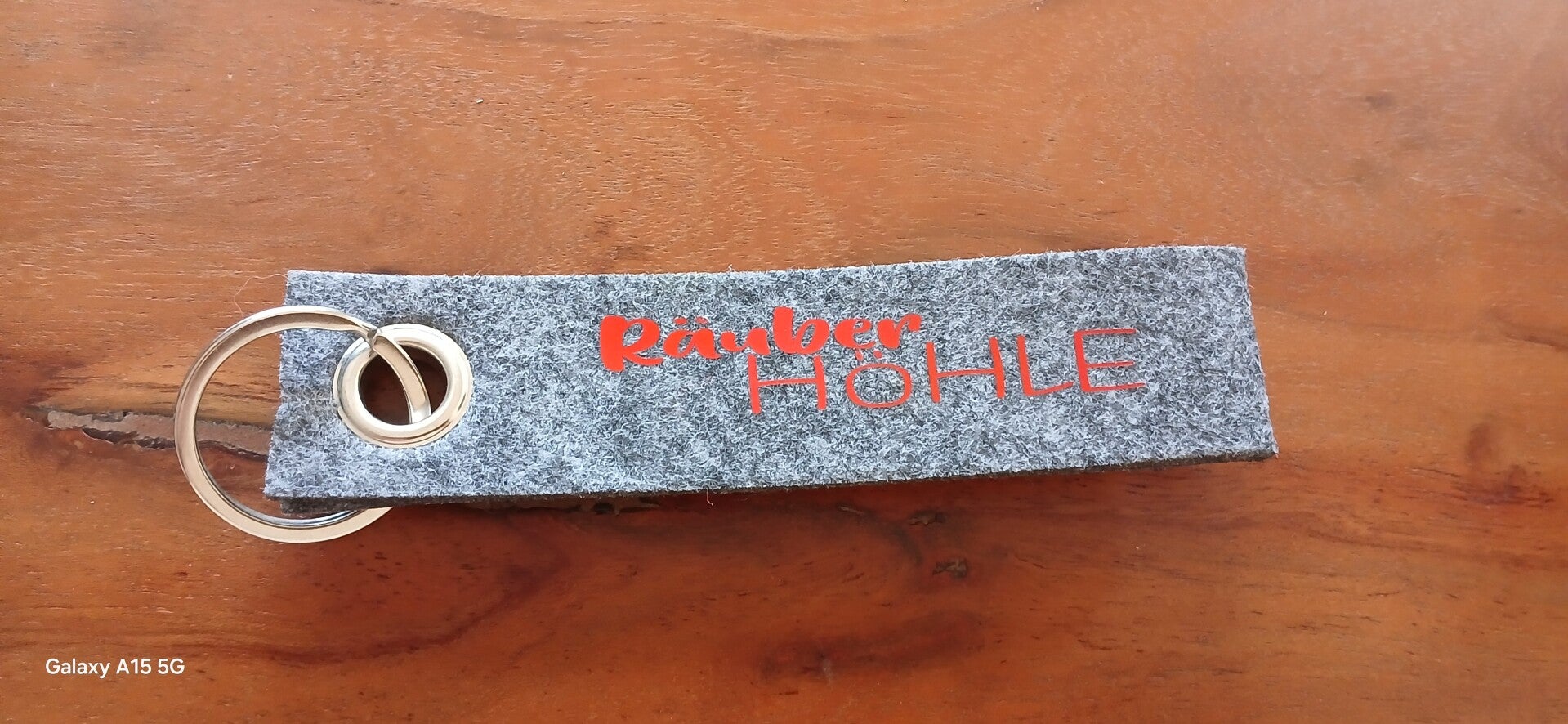 Schlüsselanhänger aus Filz dunkelgrau "Räuberhöhle"