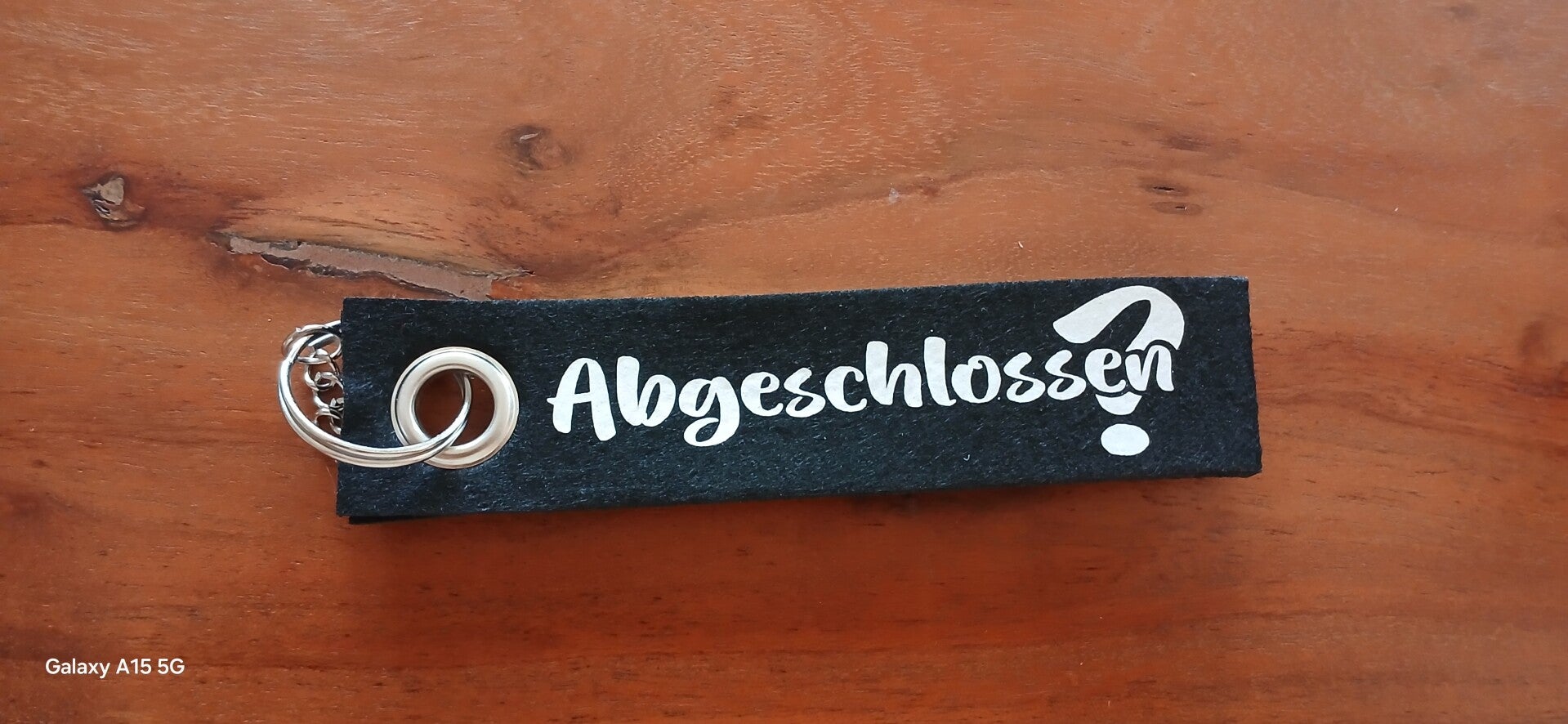 Schlüsselanhänger aus Filz schwarz/weiß "abgeschlossen?" - 5,50 €
