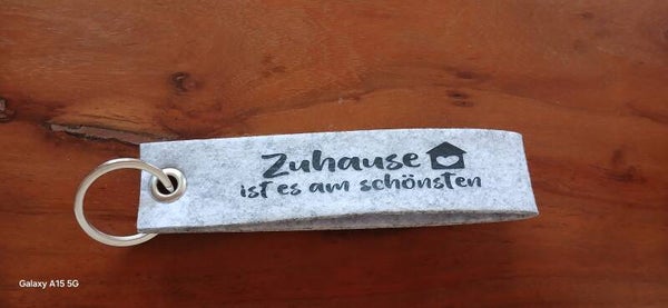 Schlüsselanhänger aus Filz hellgrau "zu Hause ist es am Schönsten" - 5,50 €